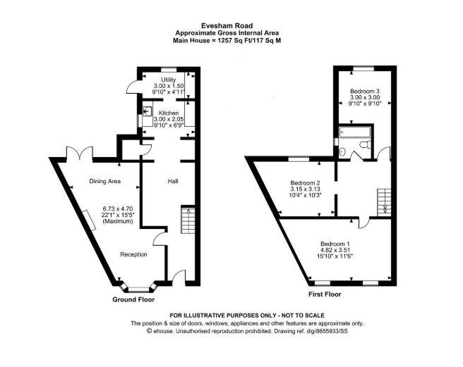 Upstairs comprises three well proportioned double bedrooms and a family bathroom, offering comfortable accommodation and flexible living space.